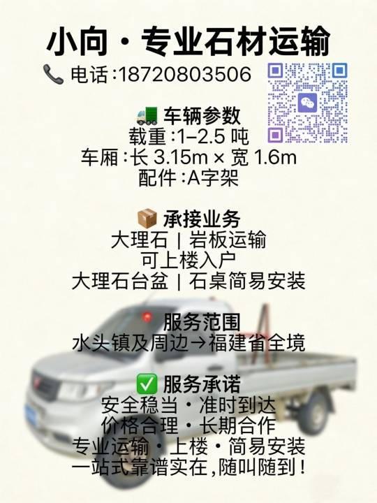 小向・专业石材运输‼️可包入户安装 电话:*****3506 微信同号 车辆参数...